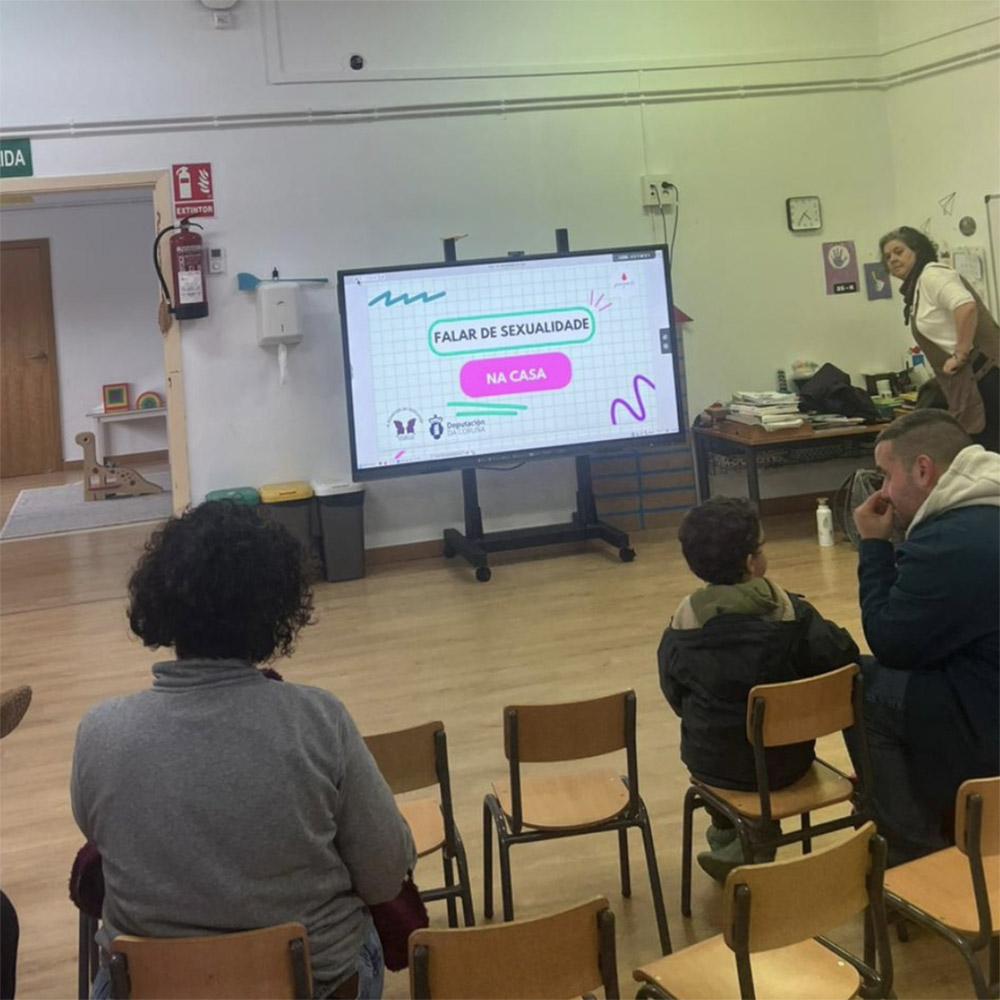 Traballamos para visibilizar os problemas da violencia de xénero, tratando de educar e concienciar ás crianzas e as persoas adolescentes, de sensibilizar as familias e ao profesorado dos centros, chegando a estas persoas dun xeito ameno e lonxe da dogmatización.